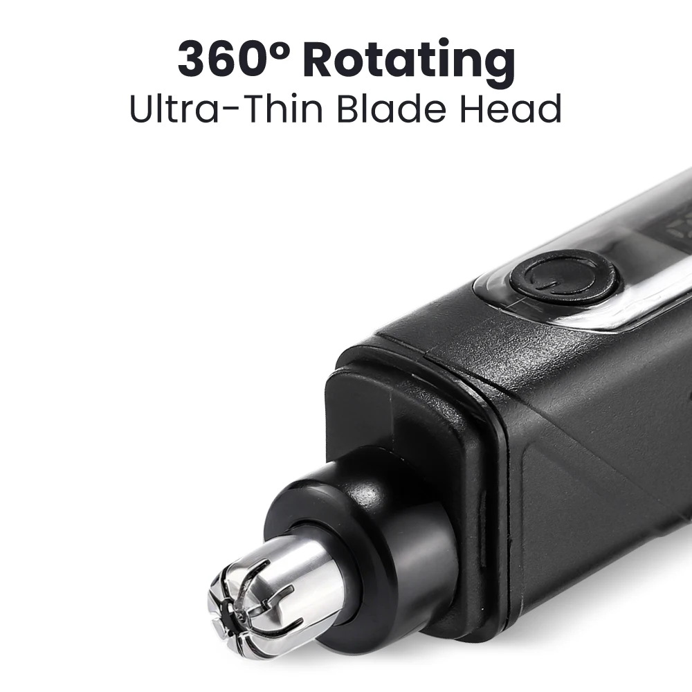 1. Equipped with a 360° rotating blade head, this electric nose hair trimmer provides comprehensive trimming and ensures that no hairs are left behind. It cuts smoothly and efficiently, without tugging or pulling.